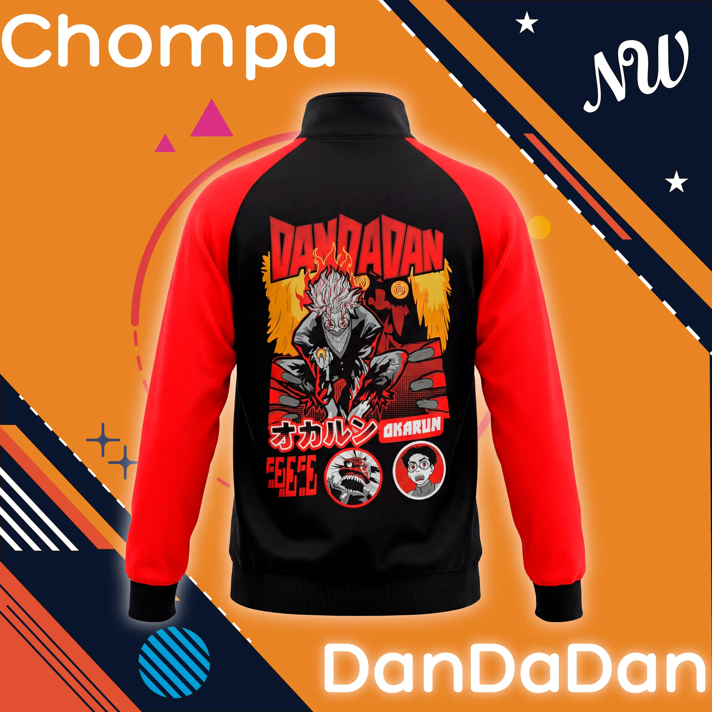 Esta chompa de DanDaDan presenta un diseño impactante de Okarun en su versión demoniaca, con un estampado DTF de alta fidelidad que resalta los colores, sombras y detalles característicos del arte original.